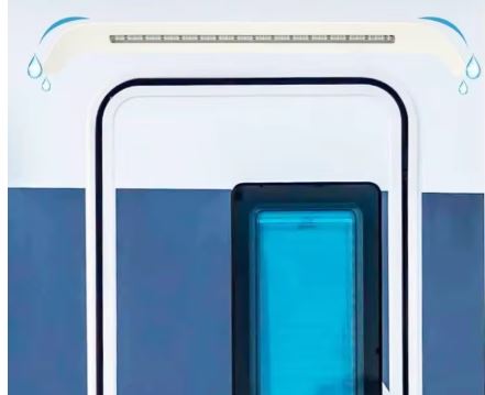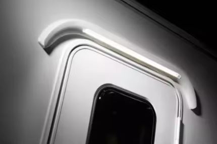 Caravan LED light lamp shaped to fit over the exterior of a door on Caravans & Motorhomes with a bult in rain gutter