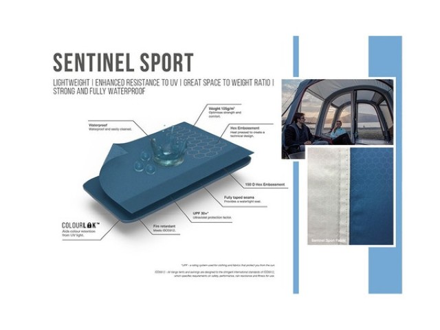Waterproof, durable and lightweight Sentinel Sport fabric with ColourLok™ technology