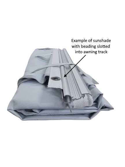 Refer to pictures 2 and 3 which shows the sewn in beading and how it fits into awning track