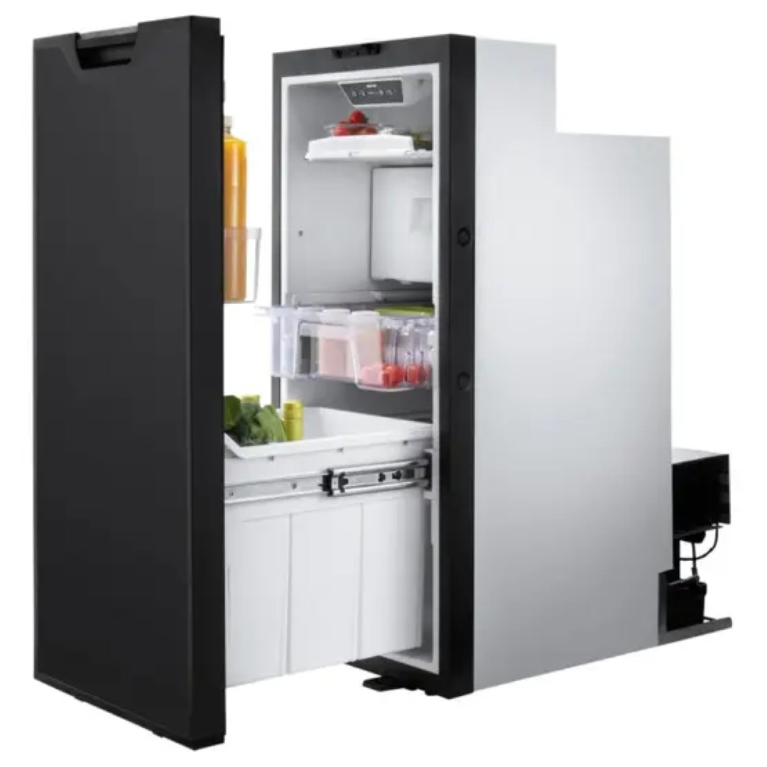 Thetford T2095 is a 12V compressor drawer fridge developed specifically for campervan kitchen blocks. It’s designed to be installed in line with the vehicle’s driving direction, which increases hallway space by 20 mm. That space gain may seem small, but in campervan layouts it’s enough to allow for a wider seating area, bathroom, or to install a hob or bowl on top of the fridge. With a compact 398 mm width, it gives manufacturers and converters more layout flexibility than wider models.