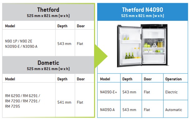 Thetford N4090 Caravan and Motorhome Fridge Freezer 89L (Replaces N3090) - Framed Door - Automatic Energy Selection