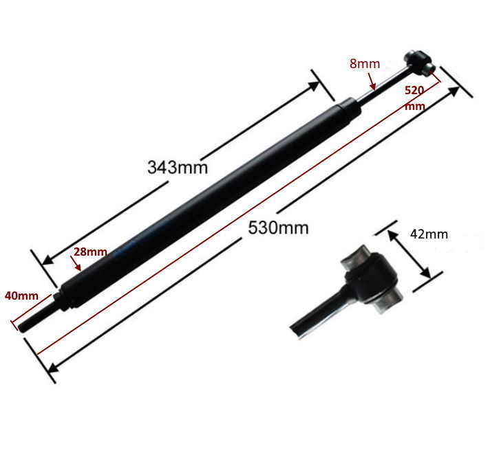 400mm from end of thread to end of gas strut - please see pictures for all dimensions