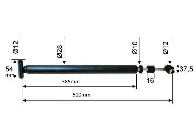 385mm long from centre to end of gas strut