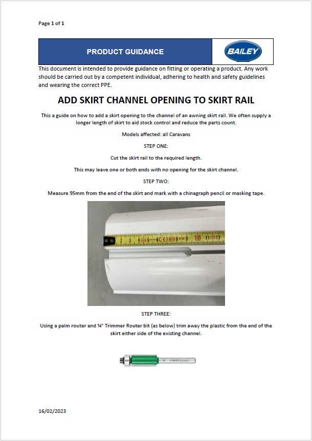 This is an official OEM part to upgrade or replace factory-fitted lower skirt rail in various Bailey caravan models from 2013-present but may fit other years