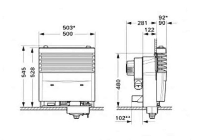 Rear installation box: 501 x 122mm (H x D)